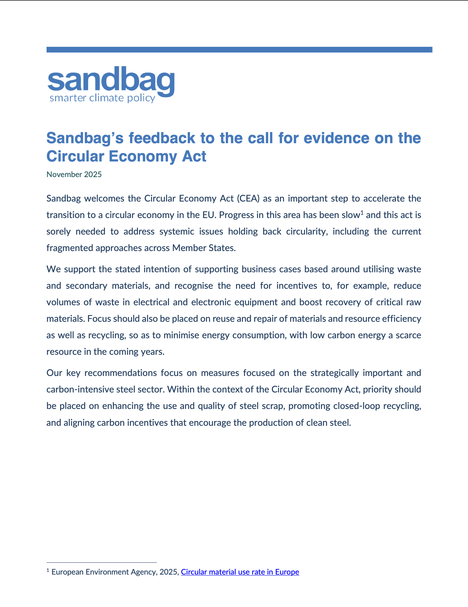 Sandbag’s feedback submission responds to the European Commission’s Call for Evidence on the Circular Economy Act (CEA).