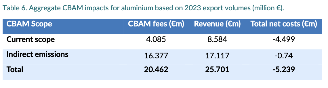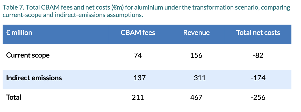 The modelling distinguishes between the current CBAM scope and its possible future extension to indirect emissions (from the use of electricity in the manufacturing of CBAM goods), which particularly affects electricity-intensive products like aluminium.